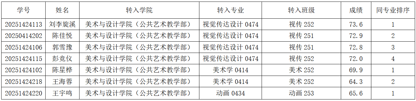 根据学校本学期转专业工作要求和91成人网 转专业工作安排,根据学校分配指标,经学院对转专业学生笔试、面试及学分绩点等核算综合成绩,经学院党政联席会议研究通过,现将拟接收转专业学生名单公示如下: