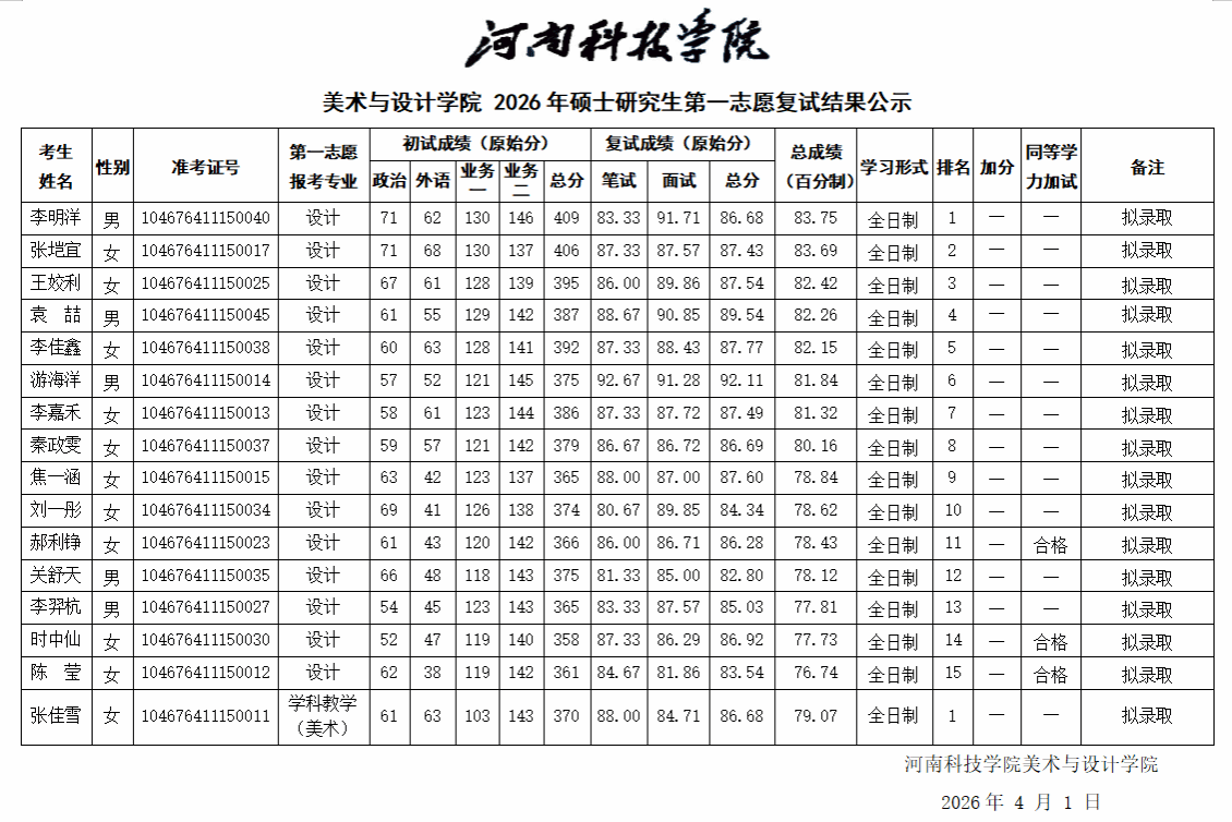 91成人网 2026年硕士研究生第一志愿复试结果公示