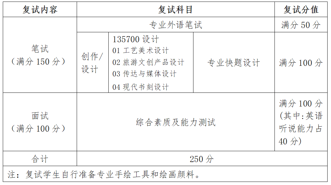 报考一志愿为135700的考生优先。若考核成绩相同,则初试成绩高者优先录取;若初试成绩相同,则英语成绩高者优先录取。