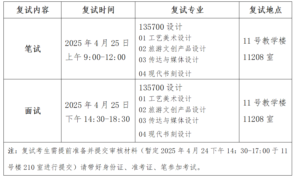 2025年硕士研究生招生复试录取工作办法》中的复试录取资格审查规定要求,于4月24日前把有效身份证件、准考证、学历证书、学位证书、成绩单、学生证、政审材料等资格审查材料电子版提交给学院进行审查,4月24日当天下午当面核验纸质材料,审查不合格者,不得参加复试。