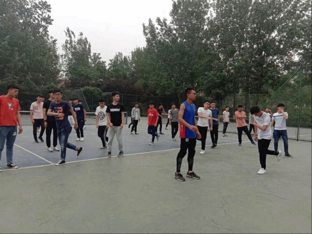 2020年12月4日街舞协会在操场练习舞步,对社团成员进行教导