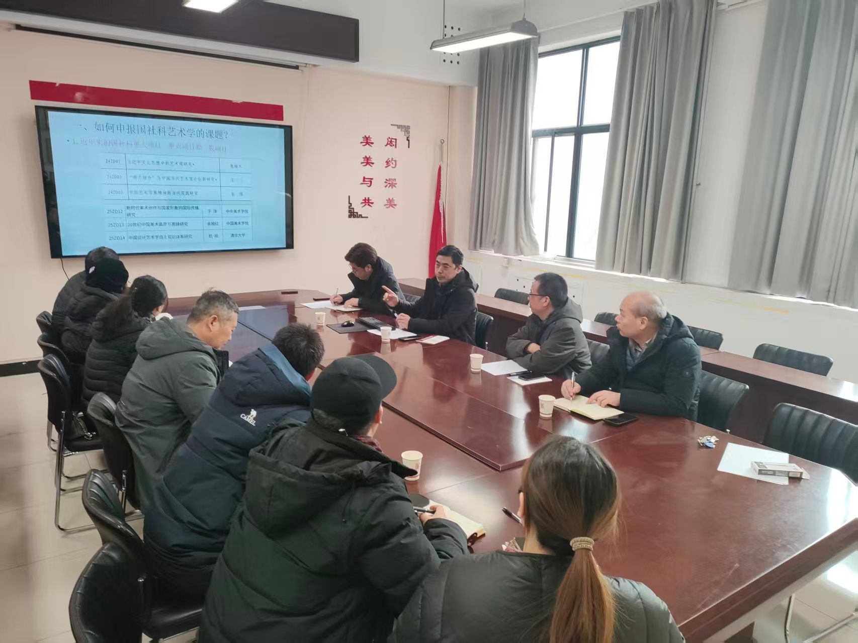 于2026年2月1日上午在11208会议室组织召开了“国家社科基金艺术学项目选题申报与课题撰写”专题讲座暨申报辅导会。本次会议系学院本年度第三次国社科申报工作推进会,由学院科研院长胡国锋主持并作会议总结。