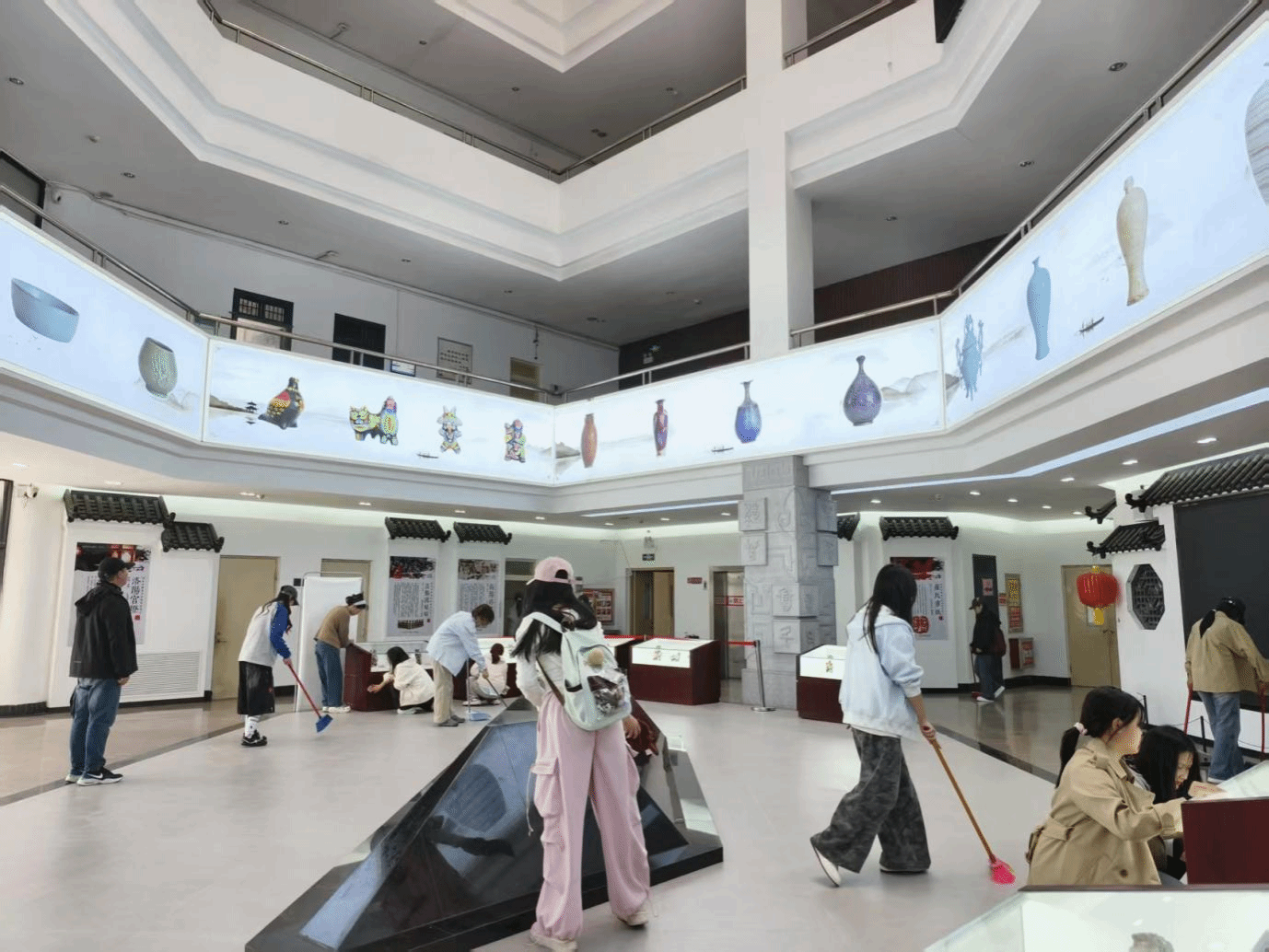 展馆志愿服务现场:齐心美化展馆环境