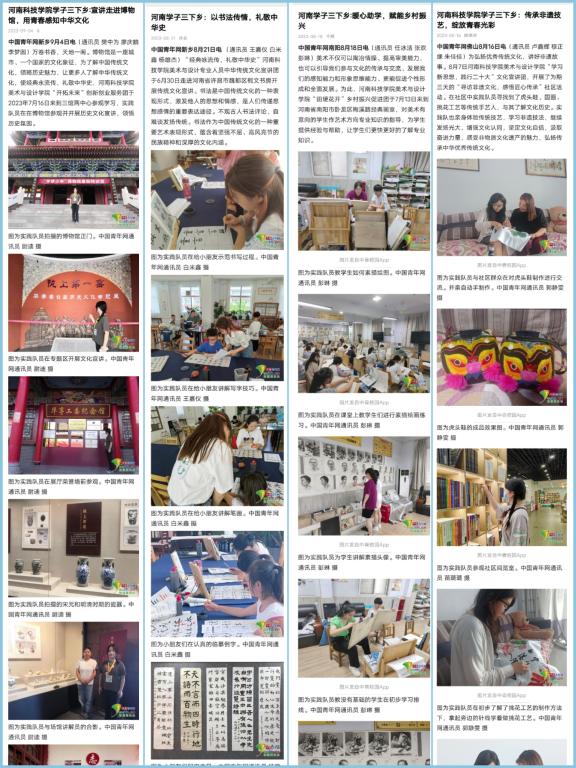 2023年大学生暑期“三下乡”社会实践活动得到中国青年网、今日头条、百度新闻、腾讯新闻、哔哩哔哩等多家媒体平台关注,已在中国青年网发表文章88篇,在外网媒体平台发表文章201篇,共计289篇。