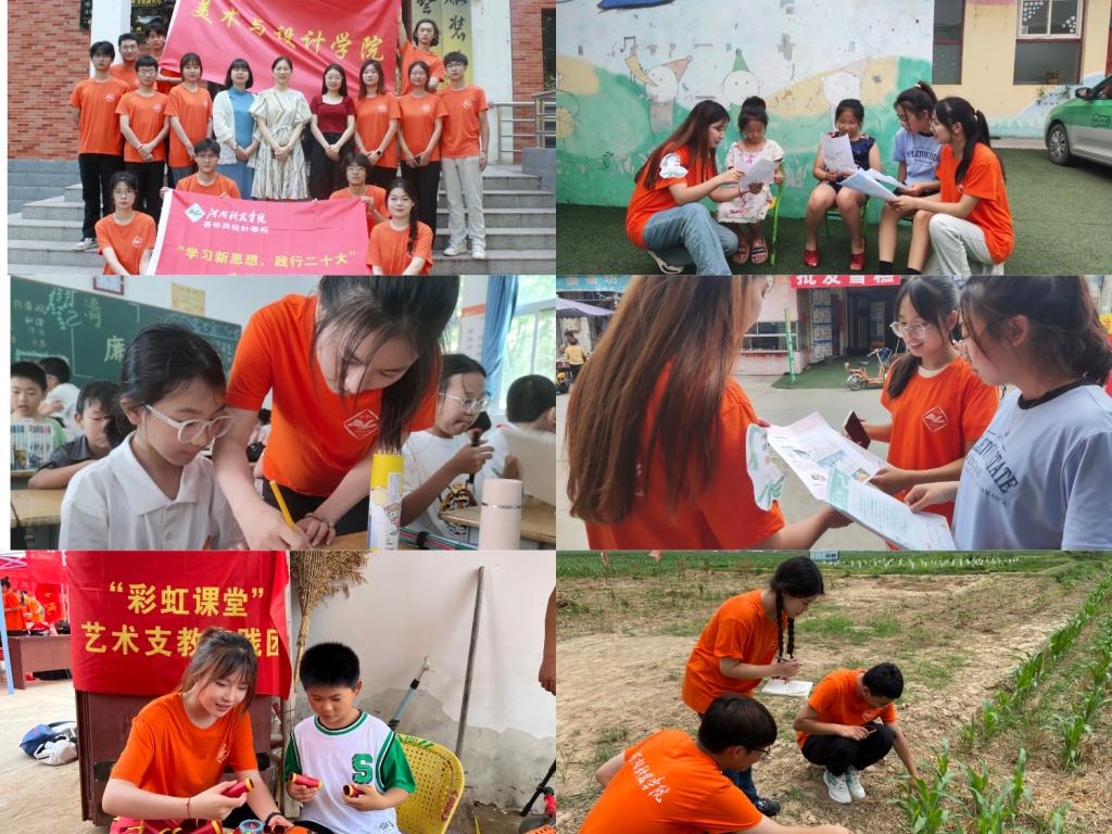 学院以党的二十大精神理论普及宣讲、党史学习教育、教育关爱、乡村振兴、社会发展成就观察、非遗文化宣传等实践主题为方向,组建了18支主团队、若干支分团队开展社会实践和志愿服务活动。同学们们紧密围绕本次活动主题,走进基层,宣讲理论知识,践行二十大精神;在田间地头观察农村农业新变化,在乡村小道细致调研助力乡村振兴;寻找民间艺术家,探索非遗文化;优秀传统文化进课堂,助力“双减”政策落实落地;关爱留守儿童,守护七彩童年……大学生们积极投身社会实践活动,以实际行动学习贯彻习近平新时代中国特色社会主义思想主题教育,脚踏实地,踔历奋发,以饱满的精神状态奉献青春力量,展现青年学子爱党爱国的坚定信念和锐意进取的良好精神风貌。