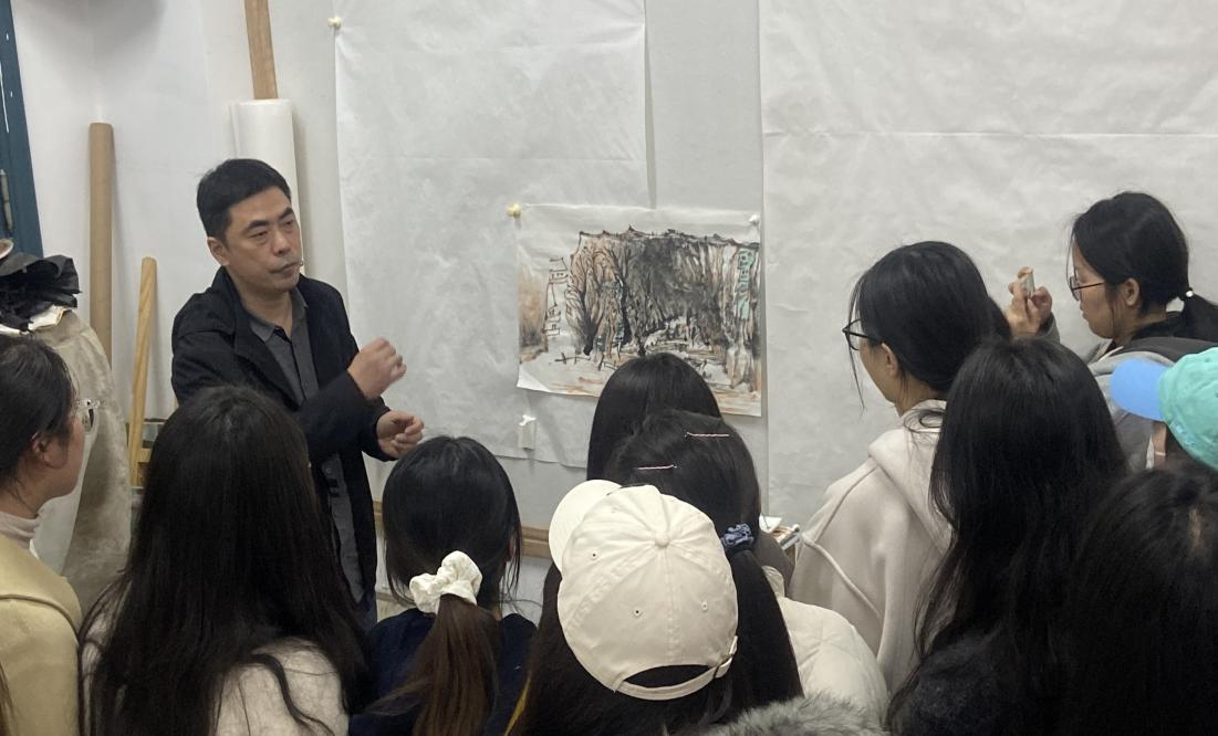 为师生进行艺术创作指导交流,活动地点在91成人网
