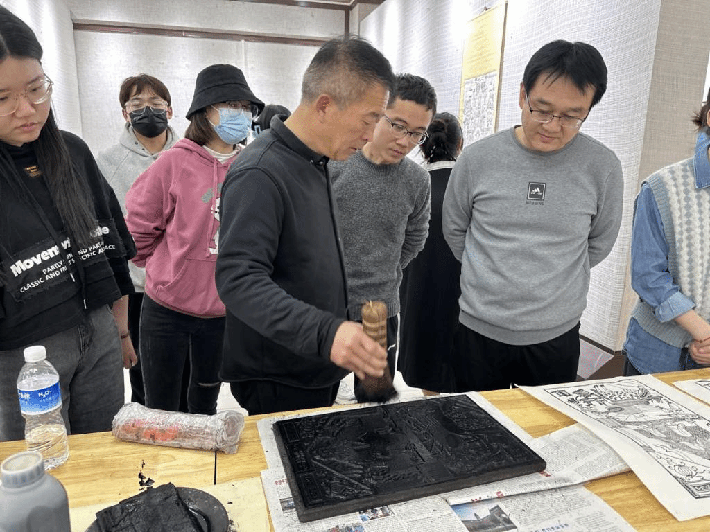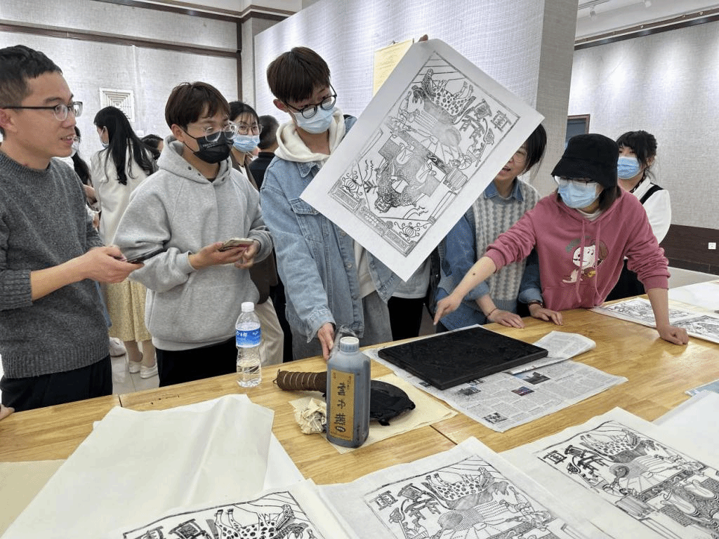 随后,在韩建峰先生的指导之下,同学们共同体验了木版年画的制作过程。