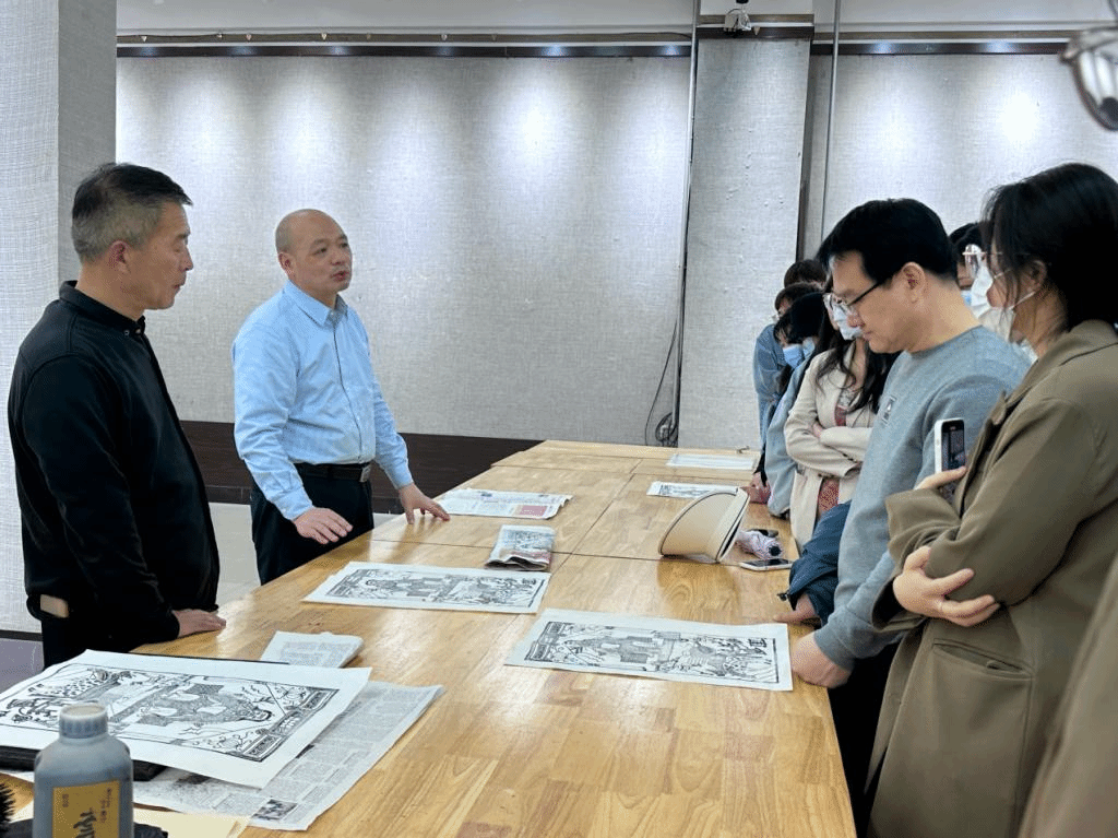2023年3月14日下午,国家级非遗项目滑县木版年画代表性传承人韩建峰先生来院交流。交流活动在艺术学院展厅举办。艺术学院院长张新词、研究生导师田伟、工艺美术专业乔珂、陈亚南老师,部分硕士研究生、工艺美术专业本科生代表参加了此次交流活动。