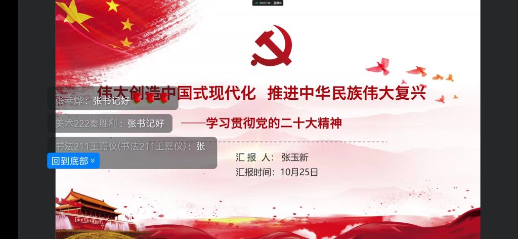 10月25日,张玉新进行了党课培训的第二讲《伟大创造中国式现代化 推进中华民族伟大复兴——学习贯彻党的二十大精神》。课上,张书记结合历史和当下,向同学们传达学习党的二十大精神,要求同学们要认真学习贯彻党的二十大精神,准确理解把握党的二十大精神的丰富内涵、思想精髓、核心要义和实践要求,以更大热情、更足干劲、更高标准奋进新征程、建功新时代,奋力谱写全面建设社会主义现代化国家、全面推进中华民族伟大复兴的新篇章!