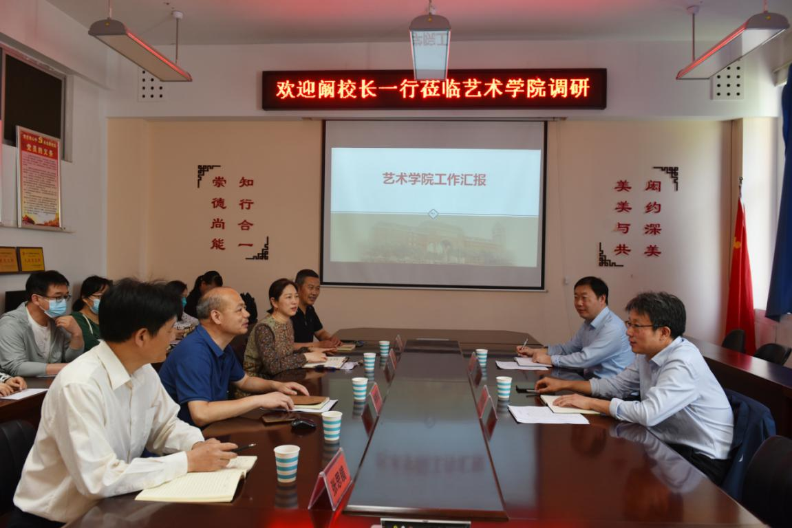 当前发展中的优势、机遇及存在的问题,并提出了解决办法。他指出,艺术学院要在“十四五”发展规划中进一步理清发展思路,找准目标定位,量化指标,提高要求,压担子,开新局;根据艺术学科自身特点,充分做好高层次人才引进工作;坚持走出去,请进来的办学思路,积极吸取兄弟院校发展经验,形成发展共识,全面做好顶层设计;要根据社会对人才的需求,找准切入点,凸显专业特色,不断深化教育教学改革和学科专业内涵建设;注重师生实践能力的培养,积极利用自身优势,产学研相结合,在文创产品设计与开发、专业互融共进和校外资源利用与开发等方面进行积极探索,进一步提升师生社会服务能力,为地方经济发展做出贡献。勇于担当,开拓创新,不断强化特色发展之路,使艺术学院在人才培养、学科建设、科学研究和师资队伍建设等工作再上新台阶。