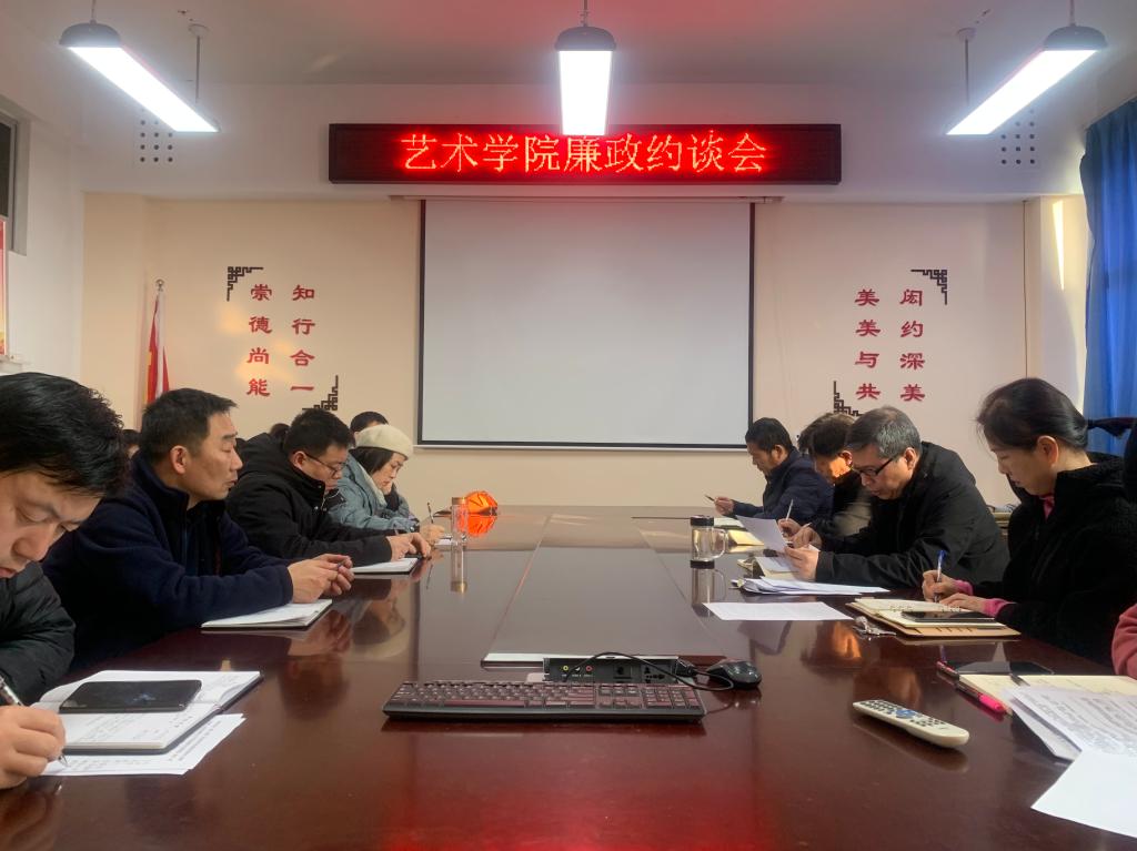 12月9日,艺术学院党委在11#208会议室开展2021年廉政约谈工作,学院全体处级干部、科级干部及党支部书记参加了会议。会议由学院党委书记张玉新主持。