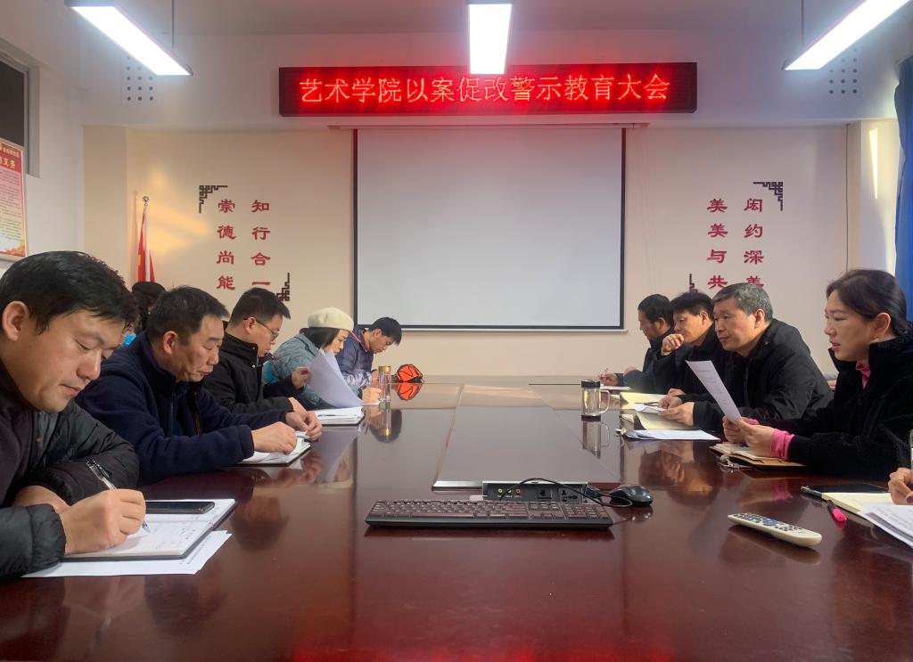 12月9日,艺术学院党委在11#208会议室召开以案促改警示教育大会,学院全体处级干部、科级干部及党支部书记参加了会议。会议由学院党委书记张玉新同志主持。