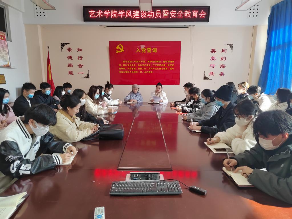 为进一步加强安全教育,营造持续浓厚的学习氛围,11月26日,艺术学院在11208会议室分别召开辅导员例会和学风建设月动员暨安全教育会。艺术学院党委书记张玉新,党委副书记徐小玉,团委书记刘凤,团委副书记陈晓华,辅导员张腾玮、杨丹及各年级学习委员约四十余人分别参加了会议。