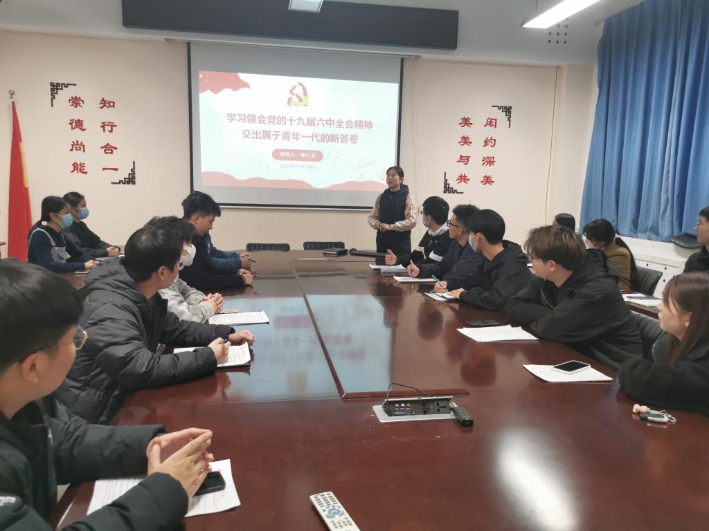 11月19日,艺术学院党委副书记徐小玉在11#208教室作学习贯彻党的十九届六中全会精神专题宣讲。艺术学院学生党员三十余人参加了会议。