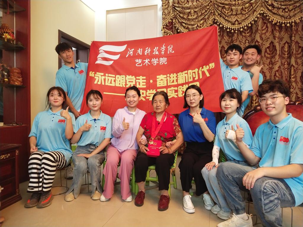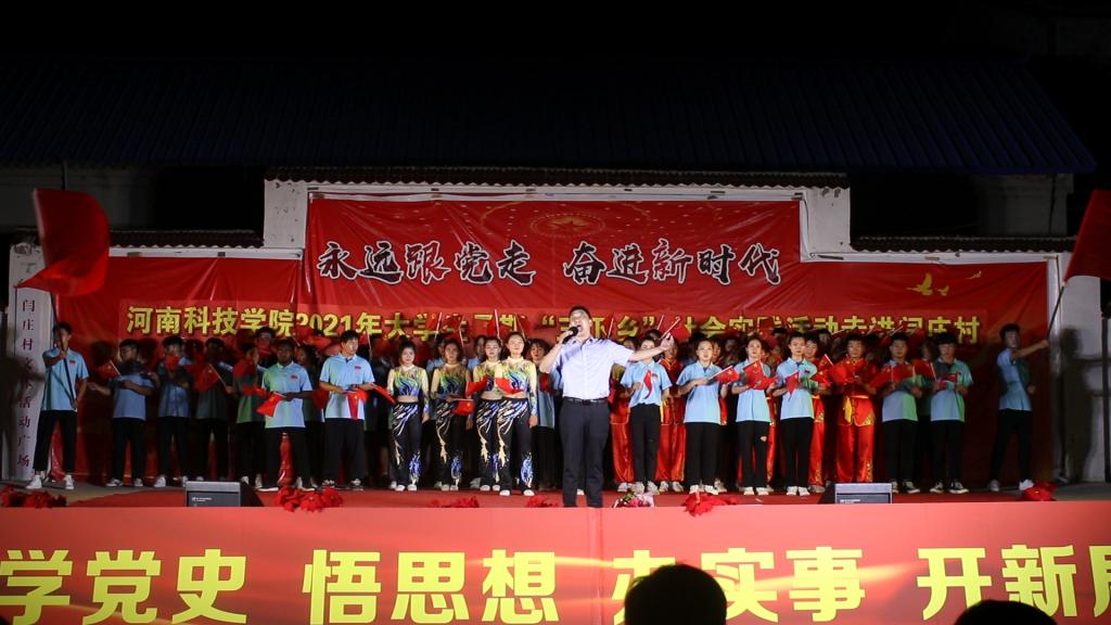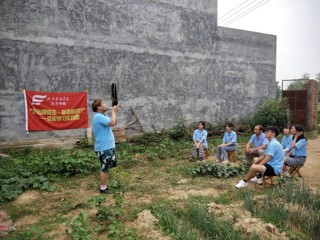 到达闫庄村后,实践队员们走村串巷,探寻了一位在党53年的老党员,聊天慰问,聆听老一辈党员在党的风雨历程,青年队员听后振奋人心,更加坚定了“听党话,感党恩,跟党走”的信念。随后,各实践团又前往对口帮扶的对象——孤寡老人董立忠家中慰问,搭建了户外“彩虹课堂”爱心支教平台。最后,艺术学院选派的专业教师和优秀学生,精心准备了歌曲、舞蹈、笙笛演奏等丰富多彩的节目,积极参加学校在闫庄村举办的文艺演出,用文艺形式积极宣传党的百年辉煌历史,把党的百年风雨历史用老百姓听得懂、看得明白的演出形式表达出来,增强了村民们为巩固脱贫攻坚成果、赓续乡村振兴凝聚强大正能量的信心和决心。