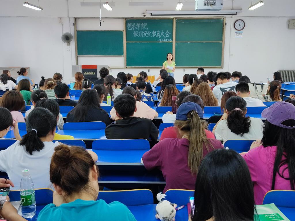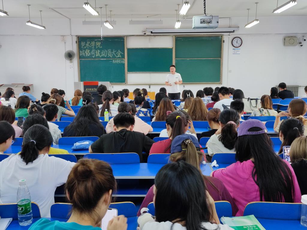 为加强学风建设,严肃考风考纪,同时提醒学生增强安全防范意识,6月25日,艺术学院在8#合二教室召开诚信考试动员暨假期安全教育大会。艺术学院团委副书记陈晓华,辅导员张腾玮,2018级、2019级、2020级全体班委和宿舍长参加了此次大会。