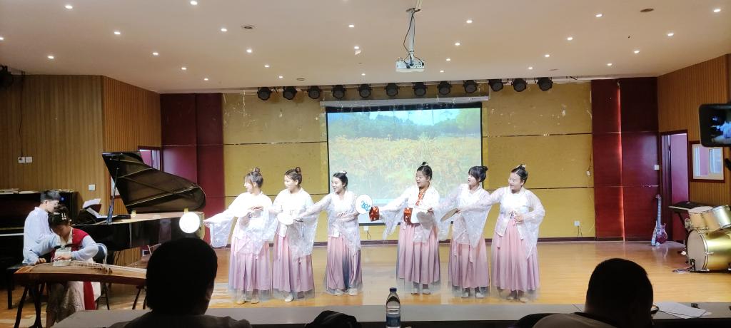 汇演伊始,一首流行歌曲《都选C》犹如一把火点燃了台下学生们的热情,使学生们的注意力更加集中。接下来同学们精心准备的节目也如画卷般展开,带给台下的同学视觉与听觉的双重盛宴。歌曲《和祖国在一起》显现出当代青年对祖国的依恋与挚爱;舞蹈《渔光曲》生动刻画了女子的静谧美好;朗诵《满江红》将同学们的爱国热情推向一个更高的浪潮,合唱歌曲《萱草花》歌颂了伟大的母爱……本次汇演集合唱、器乐独奏、舞蹈、小品等丰富多样的表演形式为一体,充满认真与美感的节目感染煽动着在座同学们的内心。最后,于振明老师对本次2020级音乐专业舞台实践汇报演出做出满意的评价,本次汇演在全体师生的合照后圆满结束。