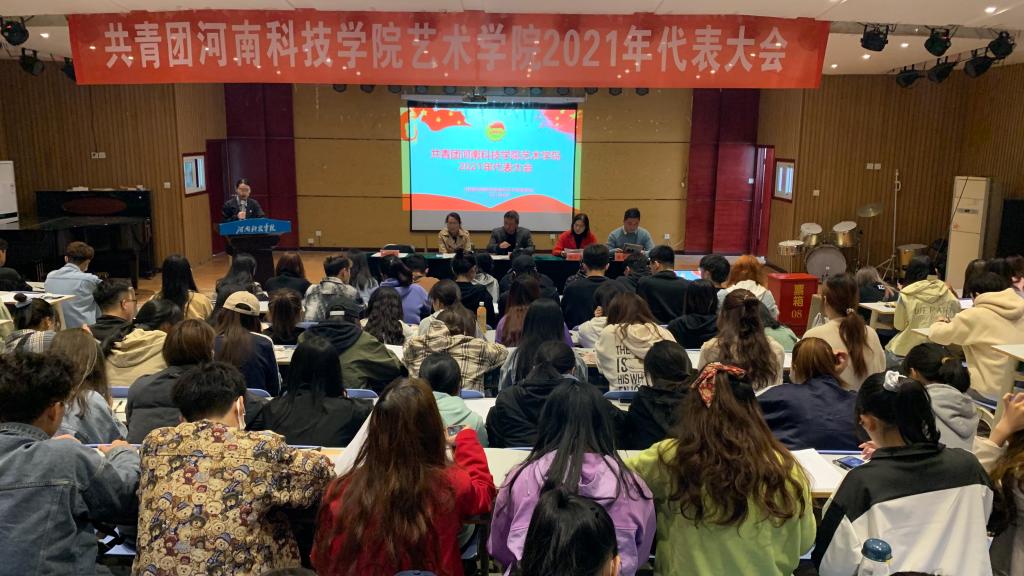 艺术学院2021年代表大会在11号楼合一召开。艺术学院党委书记张玉新、党委副书记徐小玉、团委书记刘凤、团委副书记陈晓华、辅导员杨丹及艺术学院150余名团员代表参加了此次会议。会议由团委副书记陈晓华主持。
