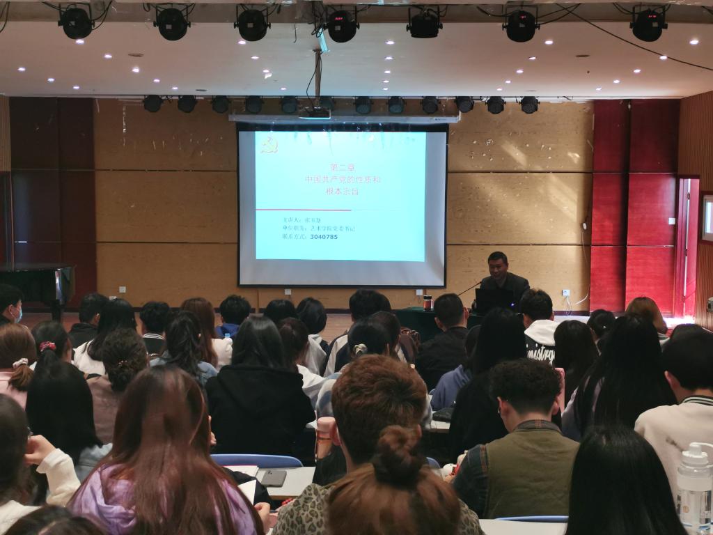 4月10日,艺术学院党委书记张玉新在11号楼合一音乐厅为学院第五十二期入党积极分子做《中国共产党的性质和根本宗旨》专题党课培训,90余名入党积极分子参加了此次党课培训。