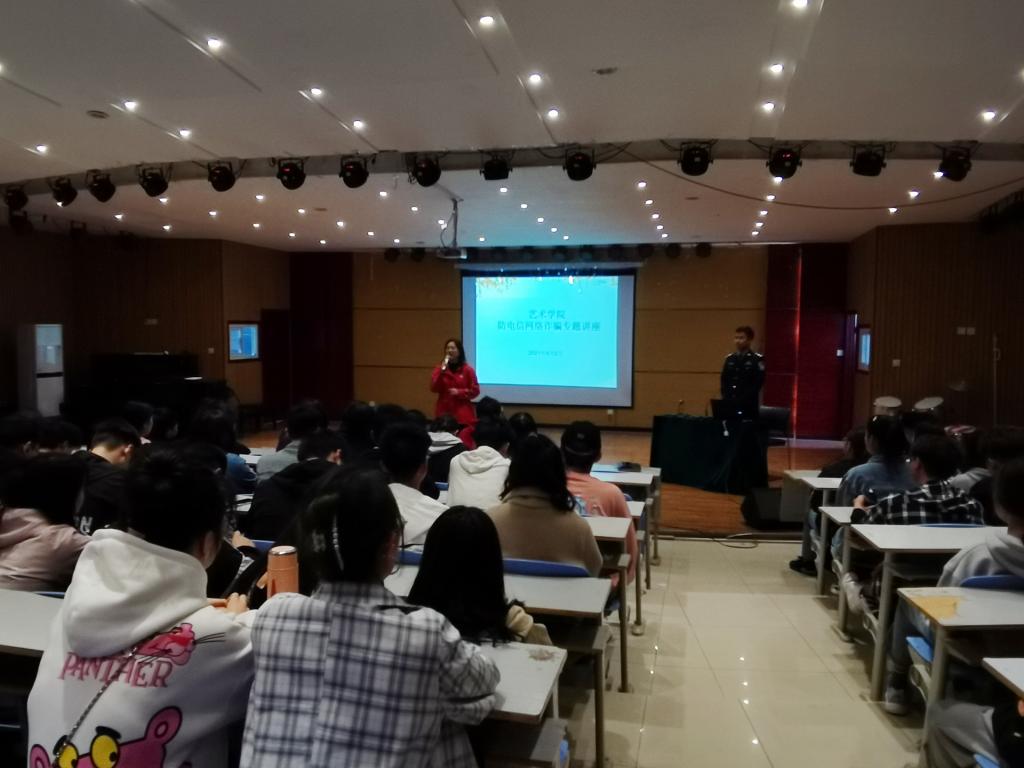 为提高学生防范电信网络诈骗的意识和能力,4月2日,艺术学院邀请新乡市公安局反诈中心民警张阳在11#音乐厅开展《防范电信网络诈骗》专题讲座。学院党委副书记徐小玉、各年级辅导员及2019级、2020级共150余名学生聆听了讲座。