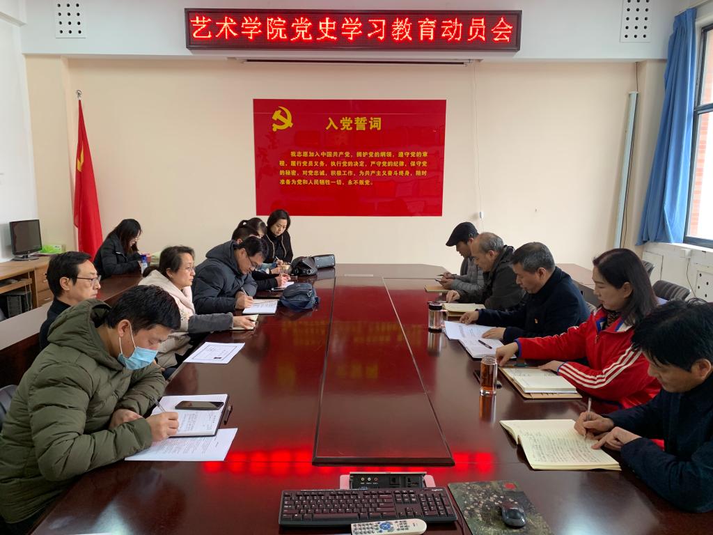 党史学习教育工作方案》,对艺术学院党史学习教育进行了安排部署。最后,张书记代表学院党委对学院党史学习教育工作提出具体要求:一是提高政治站位,充分认识党史学习教育的重要意义;二是夯实重点内容,坚持高标准开展党史学习教育;三是突出学院特色,持续解读艺术作品中的党史故事与红色经典;四是全面深化改革,引领艺术学院高质量发展;五是认真夯实实事,确保“十四五”开好局。