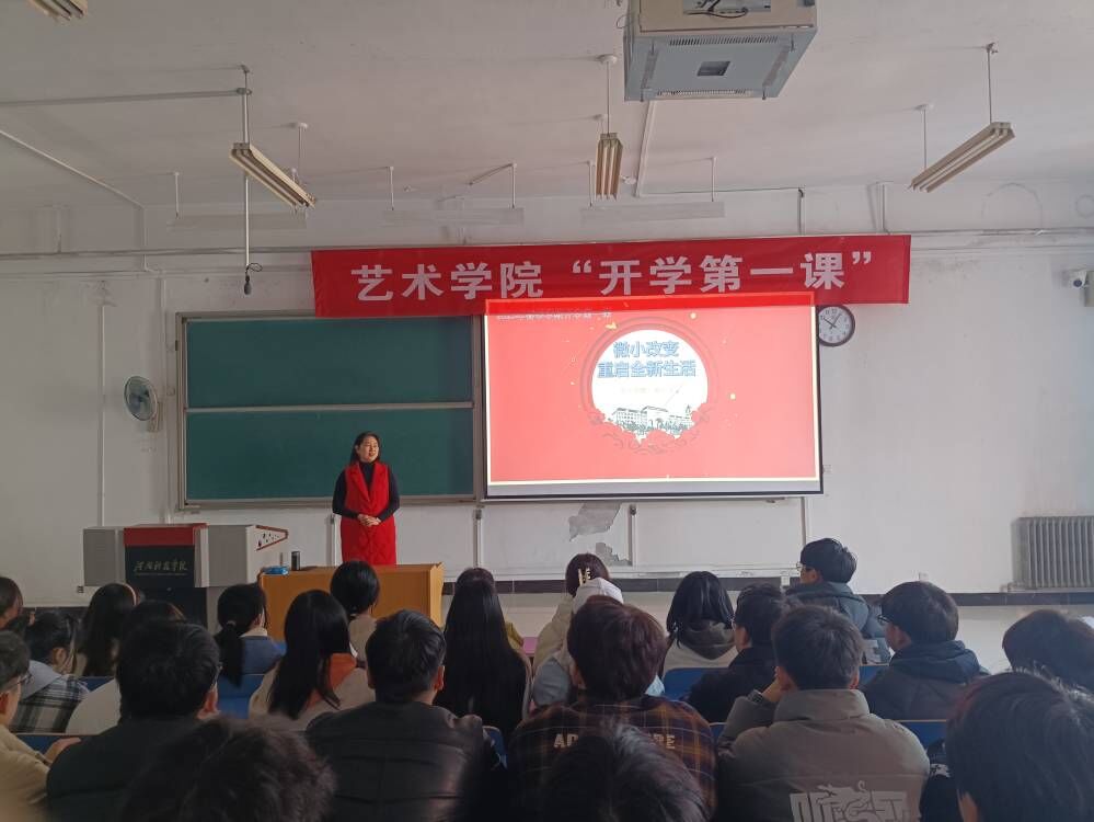 2月17日上午,艺术学院党委副书记徐小玉在东区8号教学楼四楼合教讲了题为《微小改变 重启全新大学生活》的春季开学思政第一课,2022级180余名同学一起聆听了讲座。