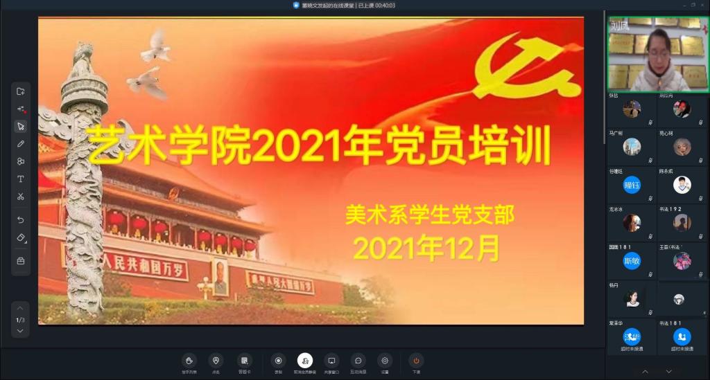 为进一步提高党员的党员意识和党性修养,按照学校党校通知精神,12月18日-31日,艺术学院党委结合党史学习主题教育,积极开展了2021年党员培训,学院100余名党员参加了此次培训。
