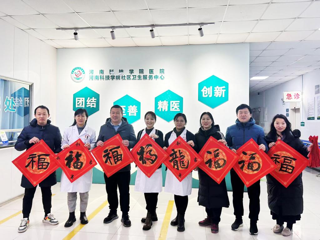 活动中,各位书法专业党员教师们现场挥毫泼墨为广大群众书写春联,一张张充满喜庆和团圆的“福”字和春联跃然纸上,我校广大教职工收到“龙年吉祥”“万象更新”等一幅幅现场书写的春联作品禁不住都喜上眉梢。学院党政领导和老师们还亲自把一幅幅蕴含墨香的福字和春联送到了敬爱的学校医护人员手里、送到了学校安保人员的手里,并为他们送上了浓浓的新春祝福,感谢他们在维护师生健康和安全上的辛苦付出。