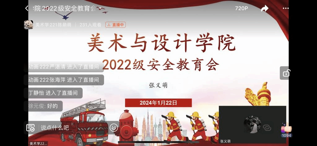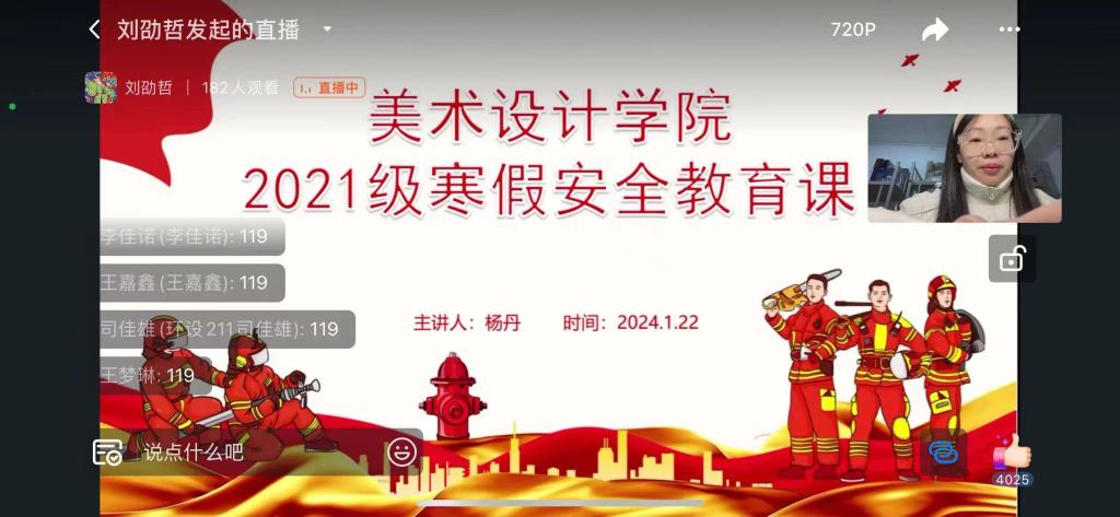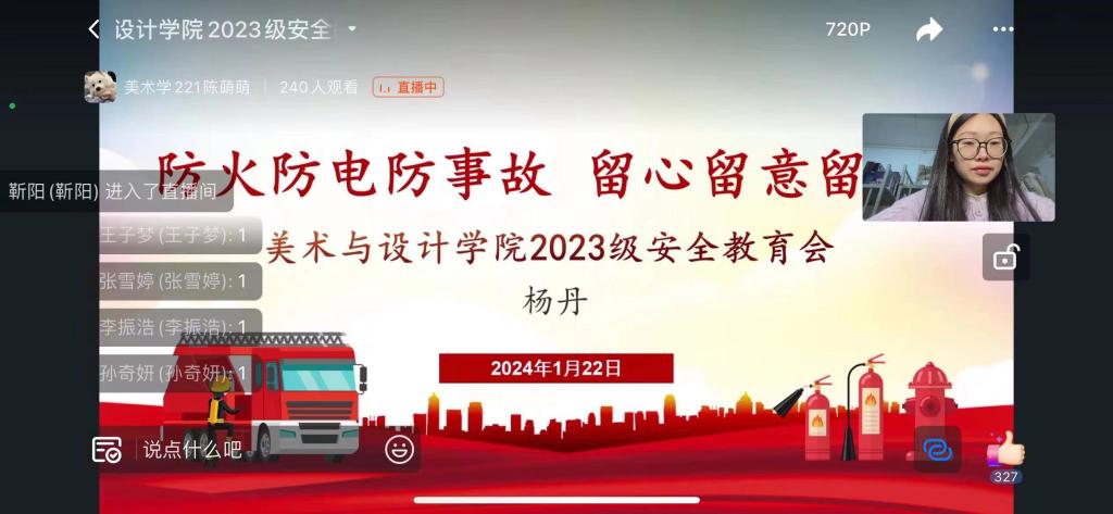 21至22日,学院辅导员们分别召开了各年级全体学生安全教育视频会议。老师们针对消防安全进行案例分析,并教授同学们逃生技能与消防注意事项,叮嘱学生用电用火需谨慎,提高安全意识和防范能力。会上,老师们还从离校前、回家途中以及返家后的交通安全、人身安全、财物安全、食品安全等方面细细进行叮嘱,反复强调提醒同学们提高安全防范意识,规范个人行为,注意自身安全,关注身心健康,争取都能度过一个平安幸福的假期。