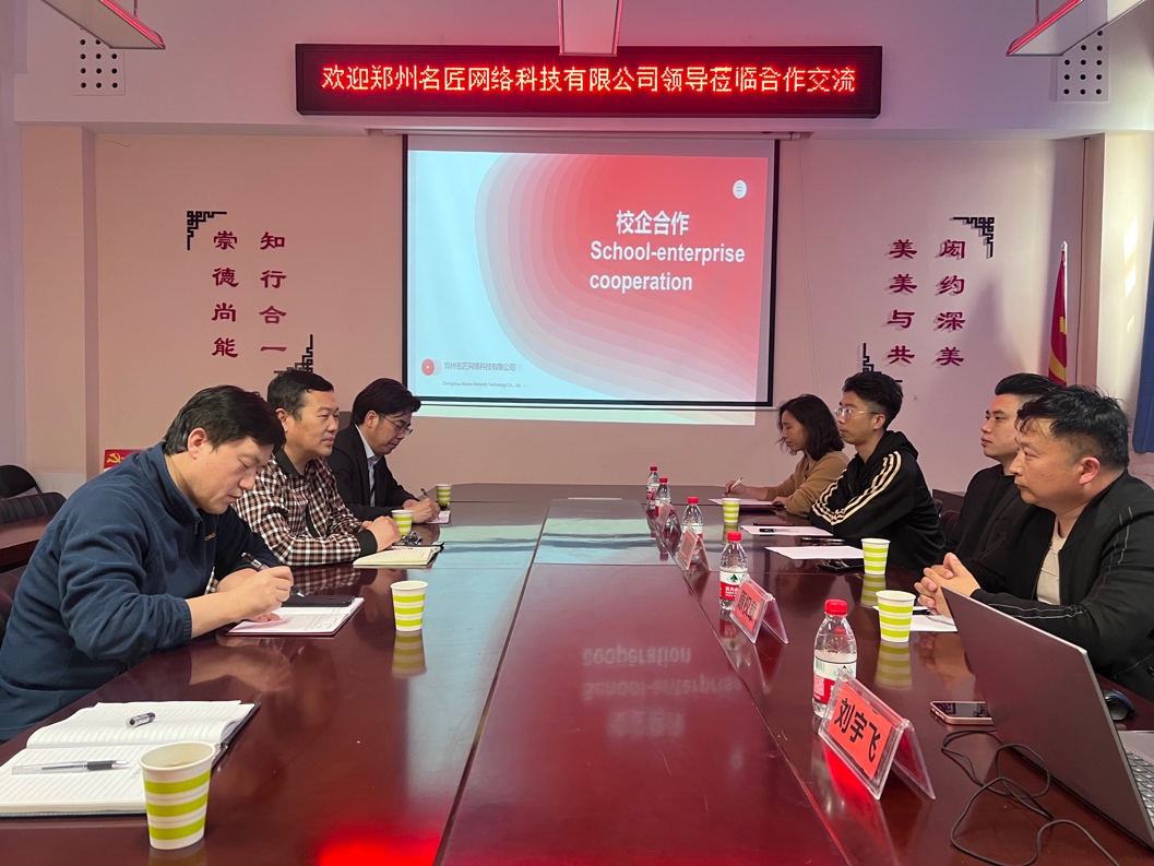 雷保杰院长首先对郑州名匠网络科技有限公司领导莅临学院表示热烈欢迎,并介绍了学院发展、师资队伍、办学环境和人才培养等相关情况。随后双方就校企协同育人、共建行业学院、毕业生就业、设立学业奖学金等议题进行了合作洽谈。会议对双方各自发挥优势资源,稳步开展交流合作,实现动画人才供需高质量发展等主要内容形成了统一意见。