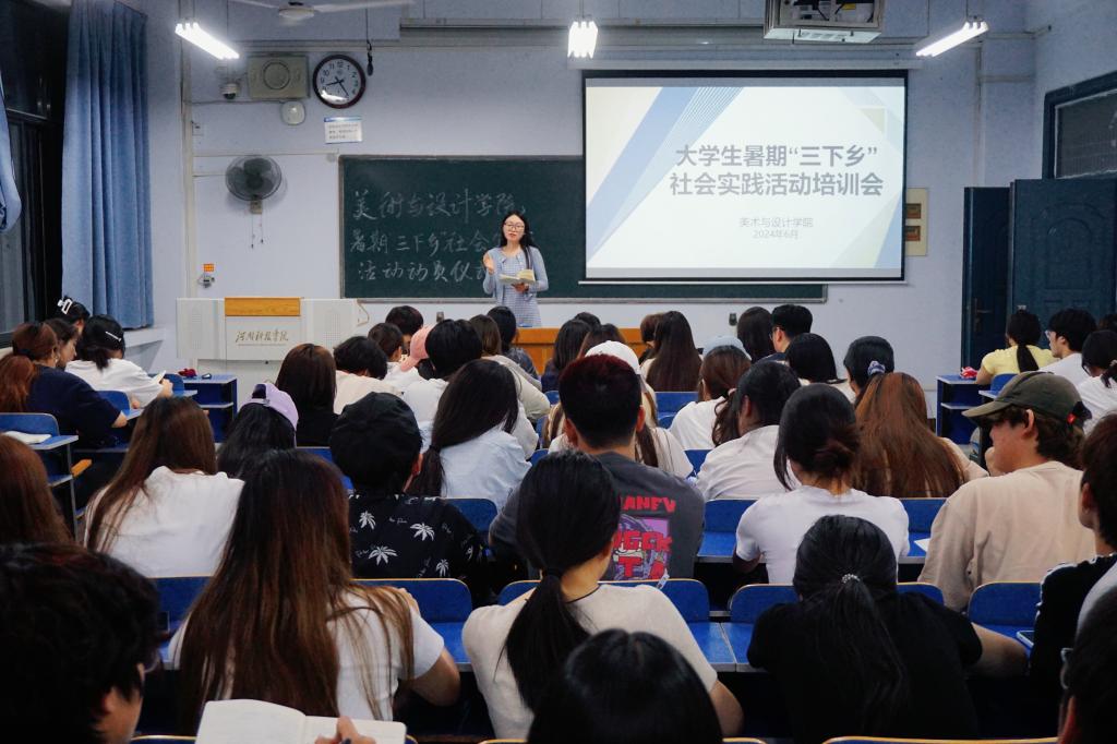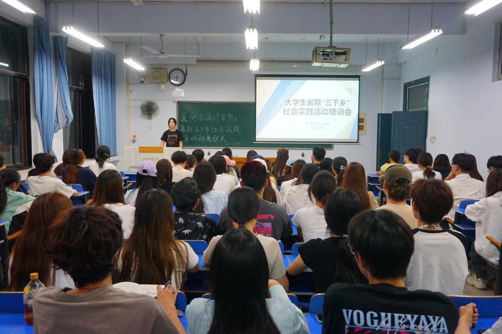 在六号教学楼306教室召开2024年大学生暑期“三下乡”社会实践动员会暨活动培训会。学院团委副书记苏梦瑶、杨丹,各实践团队队长及通讯员共80余人参与此次会议,会议由国画221班杜蕾主持。