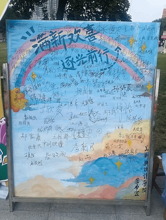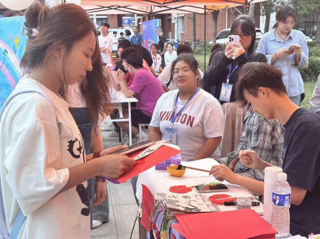 9月1日至9月6日,学院结合各专业优势,为新生精心筹备了别出心裁的欢迎仪式,美术专业的同学们用画笔绘出别具一格的迎新展板和签名墙,展现学院的精神风貌;书法专业的同学们提前准备材料,书写团扇和祝福书签,并在新生入学报到当天现场创作,为新生定制了独一无二的迎新礼物。在学院全体师生的共同努力下,为新生的大学初印象留下了美好的回忆。