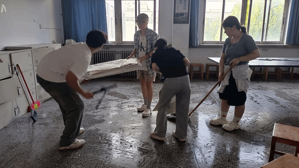 召集学生志愿者前往新生专业课教室进行卫生清扫工作,各位志愿者在各代班的带领下,有序认真的清理教室卫生,不放过任何角落,从搬运教室的桌椅板凳、有序排列摆放画架到墙脚垃圾的清理,代班和志愿者们热情高涨,用实际行动展现了美术学子的担当,为新生送来了温暖。