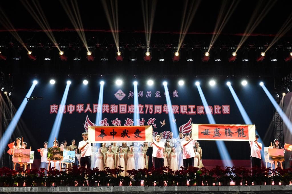 学院党委对本次比赛高度重视,分会同志制定了详细的参赛方案,全体教职工克服了工作生活各方面的困难认真进行排练。比赛当天,参赛队员们情绪饱满、精神昂扬,一首《国家》唱出了老师们对祖国的深沉热爱。结合学院专业特点,比赛时还增添了朗诵、书画展示等环节,特别是书法专业老师现场书写的书法作品“龙腾盛世,爱我中华”更是让全场观众一起产生了爱国爱校的强烈共鸣。
