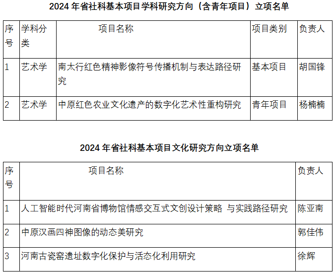 取得佳绩,5项项目获批立项。其中,基本项目学科研究方向(含青年项目)立项2项,基本项目文化研究方向立项3项,立项数量实现新的突破。