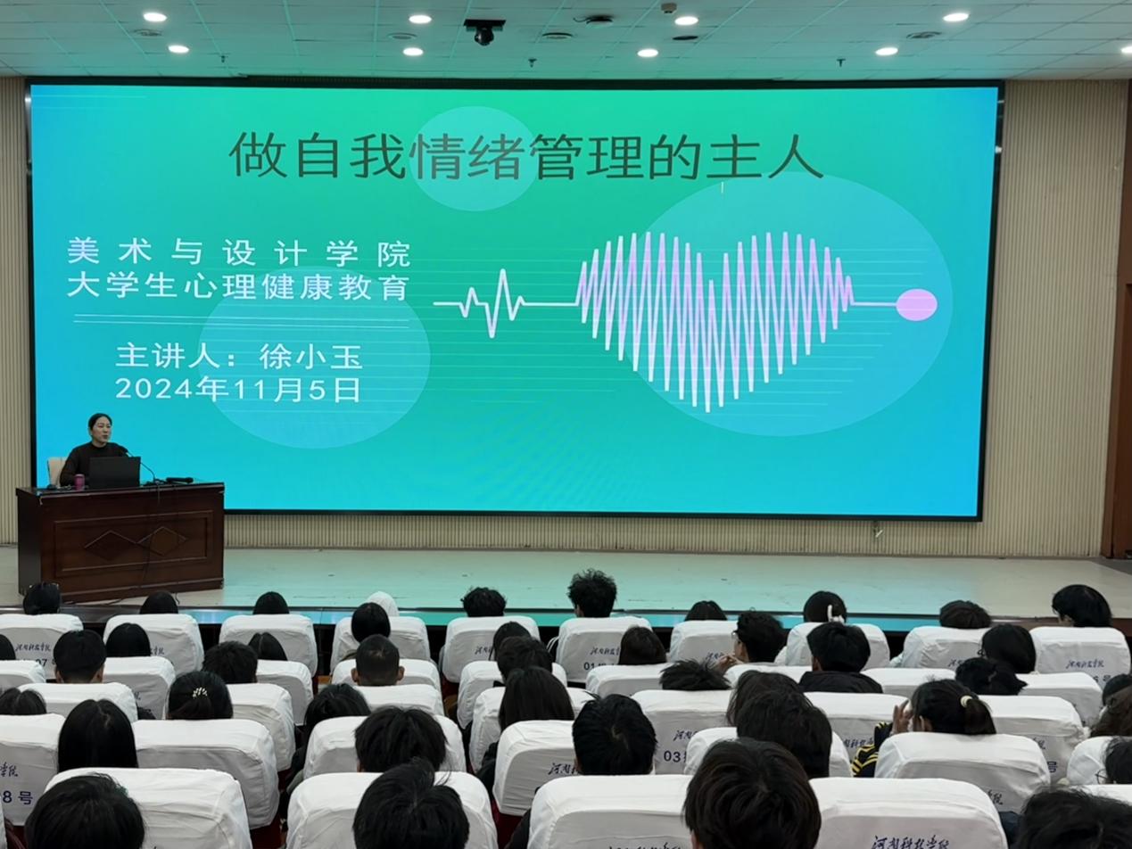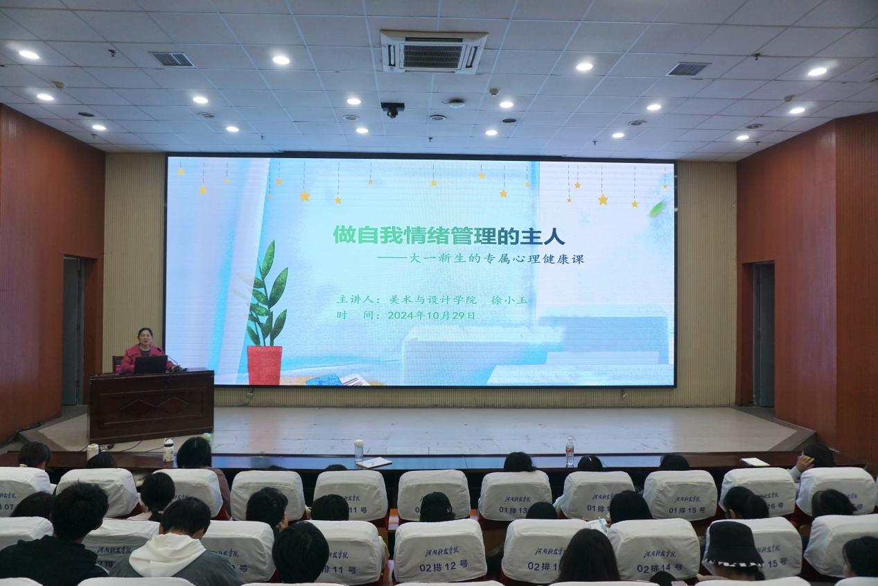 党委副书记徐小玉分两批为全体2024级新生进行了心理专题讲座。她以“做自我情绪管理的主人”为题,结合典型案例,鼓励同学们快乐学习、阳光生活,学做自己的情绪管理专家。