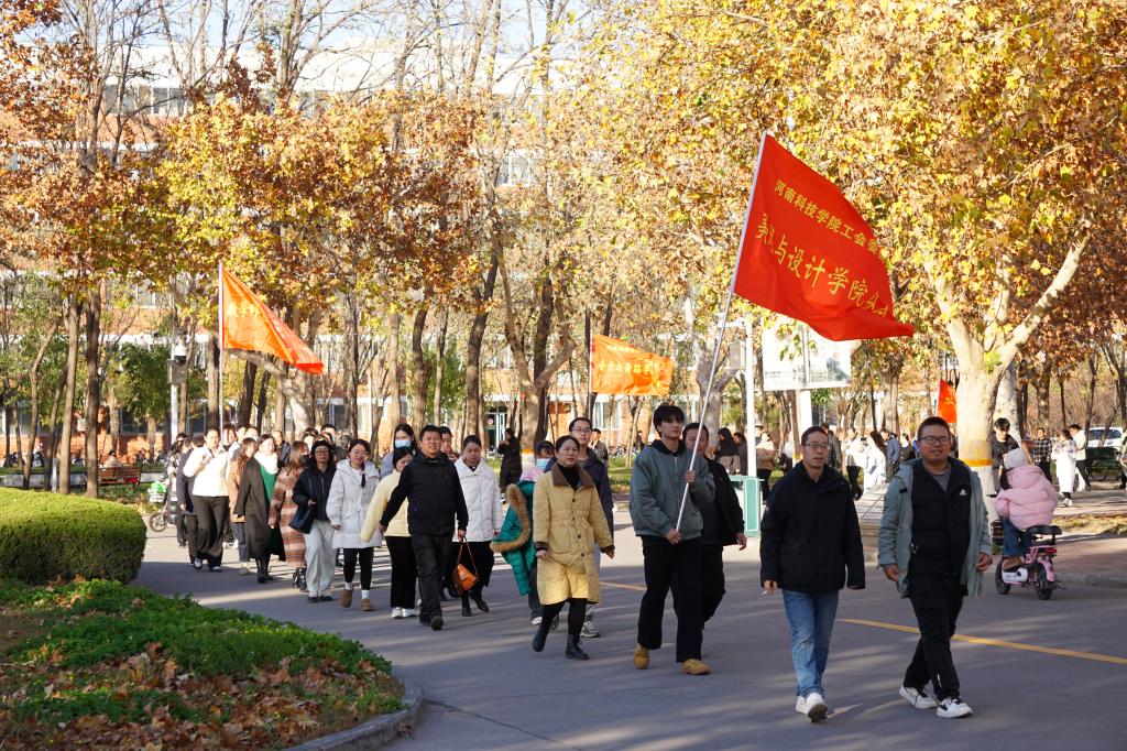 学校“冬季健身月”启动仪式之后,分会全体教职工跟随学校的整体队伍进行了冬季健步走。参加健步走的老师们精神饱满、脚下生风,一路上说说笑笑,趁难得见面的机会彼此畅快交流,意兴盎然,与校园初冬的美景融为一体。