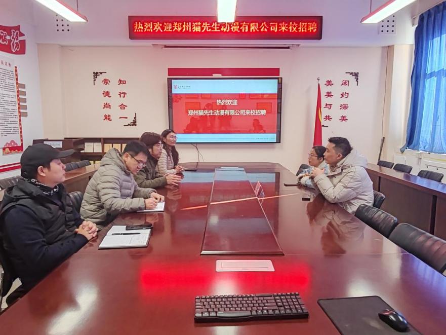 12月16日,郑州猫先生动漫有限公司相关负责领导到院招聘,田伟副院长接待并主持了本次供需就业招聘会议。胡国锋副院长及动画专业负责教师出席会议。