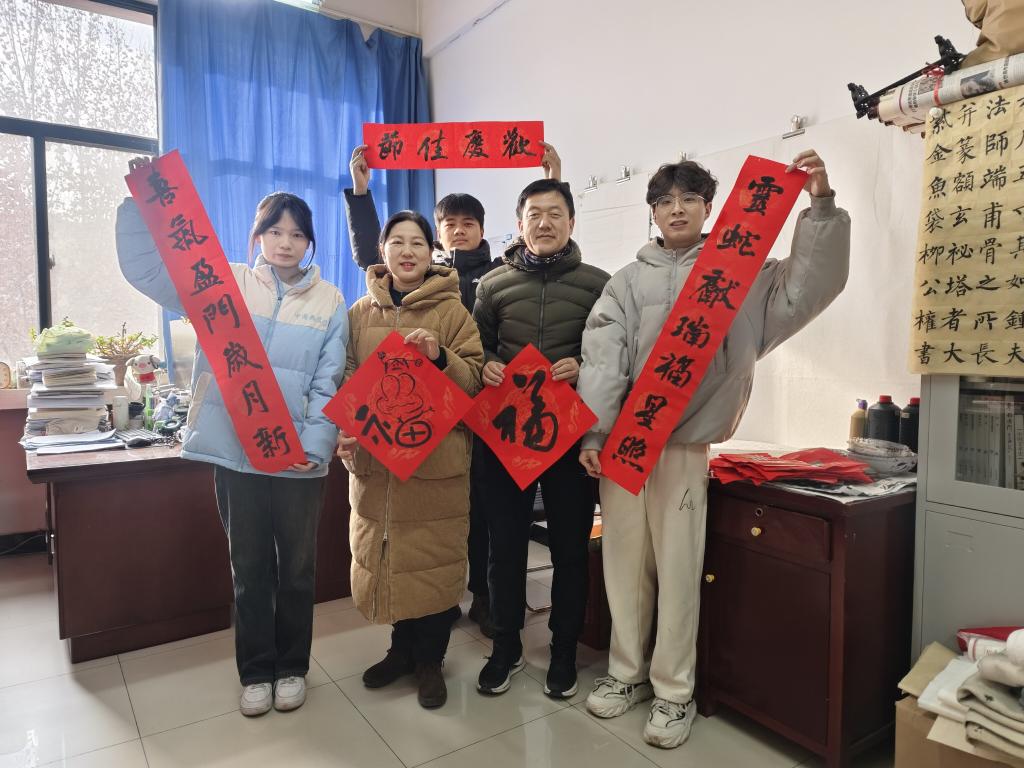 一副副写满新年祝福的春联和“福”字,写的是汉字,报的是节讯,暖的是人心。美术学子饱含着真情,于黑墨红纸间感受着笔墨丹青的独特魅力,浸润的是优秀文化,续写的是美好祝愿。此次活动拉近了师生之间的距离,营造出了温馨和谐的氛围。