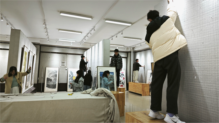 在展览筹备与展厅布置阶段,志愿者们迅速响应,充分发挥专业优势,精心搭配作品色彩与风格,反复调整悬挂高度和角度,只为营造出和谐且具视觉冲击力的展览空间。