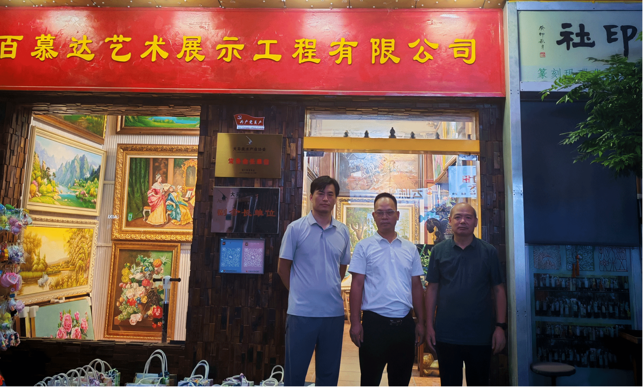 在走访深圳市盛艺达油画艺术有限公司期间,与公司负责人就绘画艺术市场的经营管理、学生见习、研习创业等进行了交流。