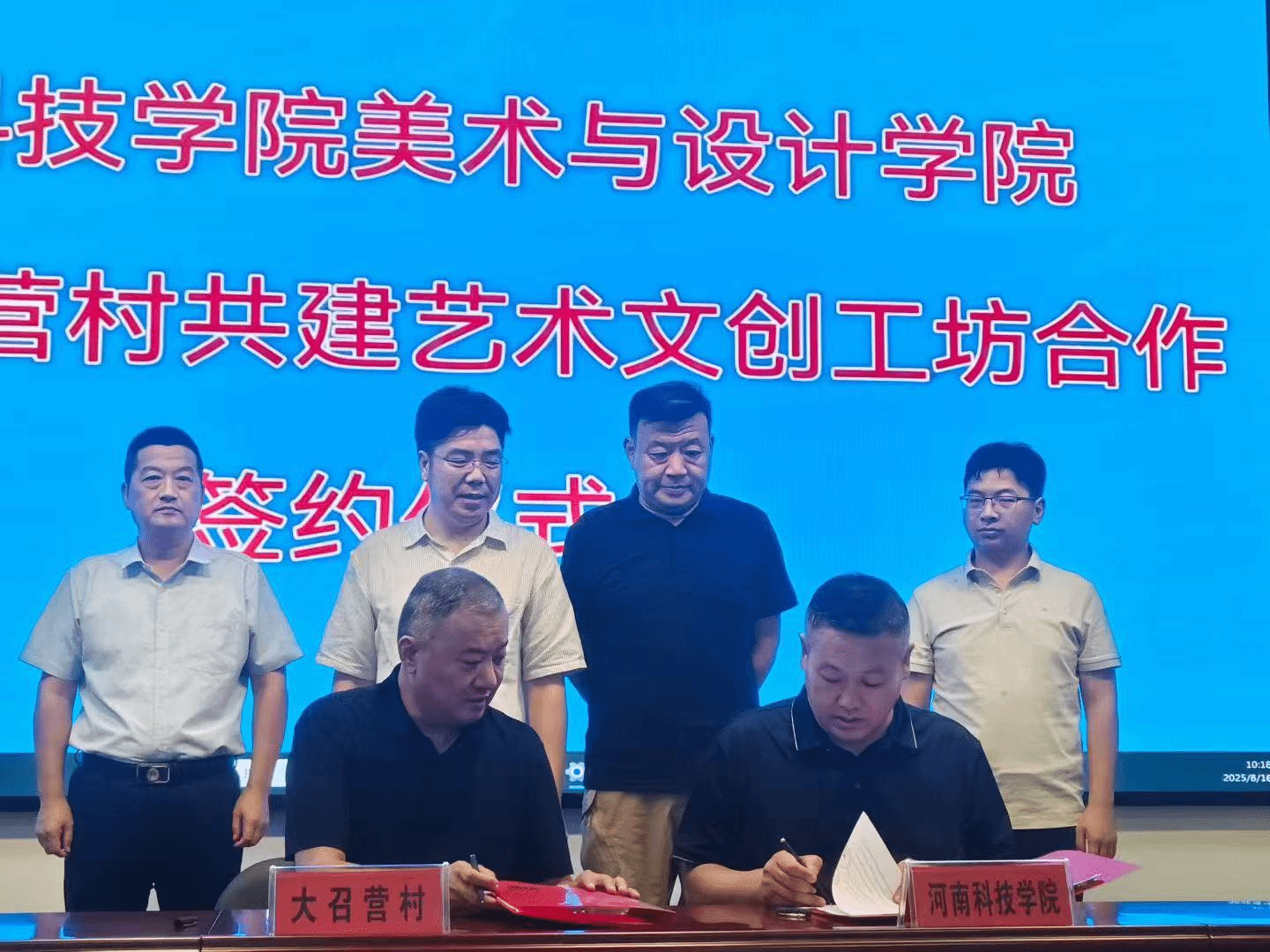 院长雷保杰、副院长胡国锋、党政办主任王奇男、数字艺术实训室主任冯建永、工艺美术专业负责人陈亚南,新乡县大召营镇相关领导及大召营村党委书记、村委会主任姜磊等出席仪式。