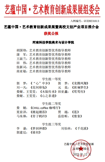 多名硕士生导师获得艺术创新教育优秀指导教师荣誉称号。