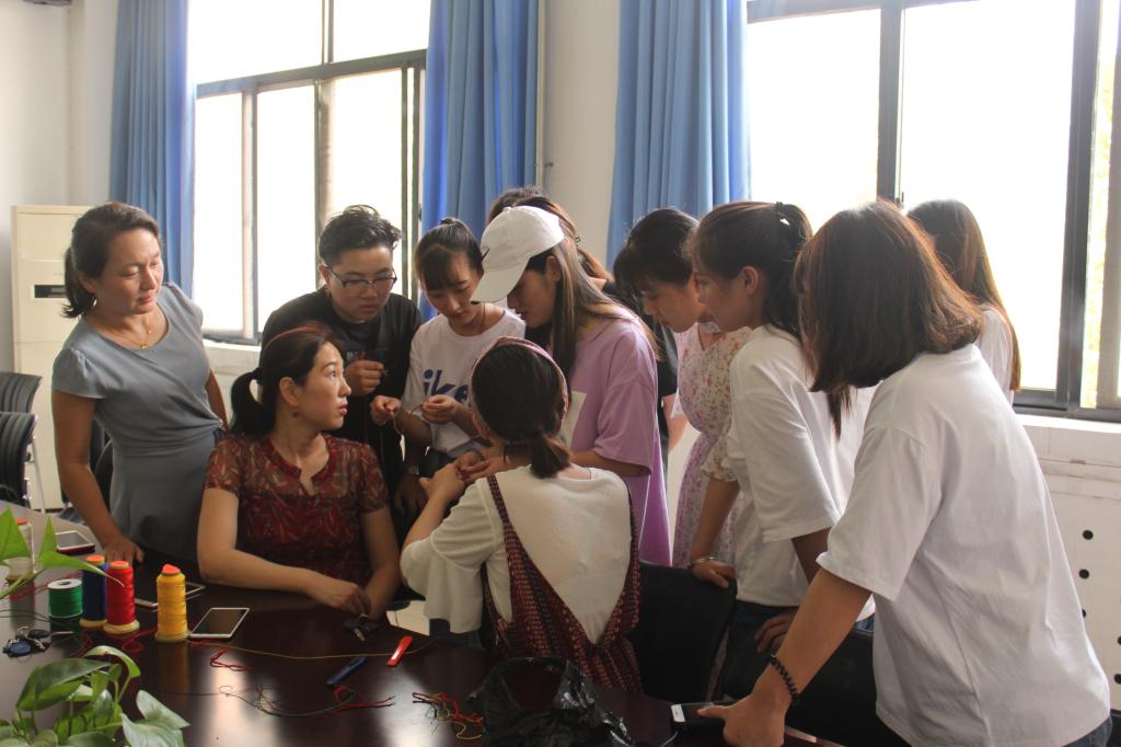 师生围坐在一起,兴致勃勃地编彩绳,畅谈端午节的各种风俗习惯,欢声笑语不断。翻飞的五彩细线像充满了活力一般,在大家手中不断游弋。同学们还分组学习互相讨论,现场总结快速编绳的技巧,不一会儿,一串串五彩缤纷的彩绳自手中翻出,有的红绿相间,有的白蓝交错,各色各样,精美别致。最后,大家互相赠送了自己手工制作的彩绳,并送上了各自真诚的祝福。