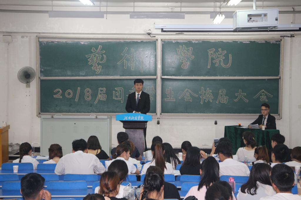 为充分发挥学生会自我教育、自我管理,自我监督的职能,推进艺术学院团委学生会工作持续有效的开展,艺术学院于6月7日下午在八号楼合一教室举办2018届团委学生会换届大会,艺术学院党委副书记徐小玉、团委辅导员及团委学生会干部、17级学生近200余人参加了大会。
