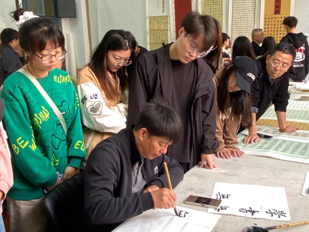 梁冰、袁景林、张建斌、张玉河、刘国明、梁立云、王恩中、赵志宇、司凯封老师现场挥毫泼墨,为书法专业同学进行书法创作展示,并解答同学们现场提问。