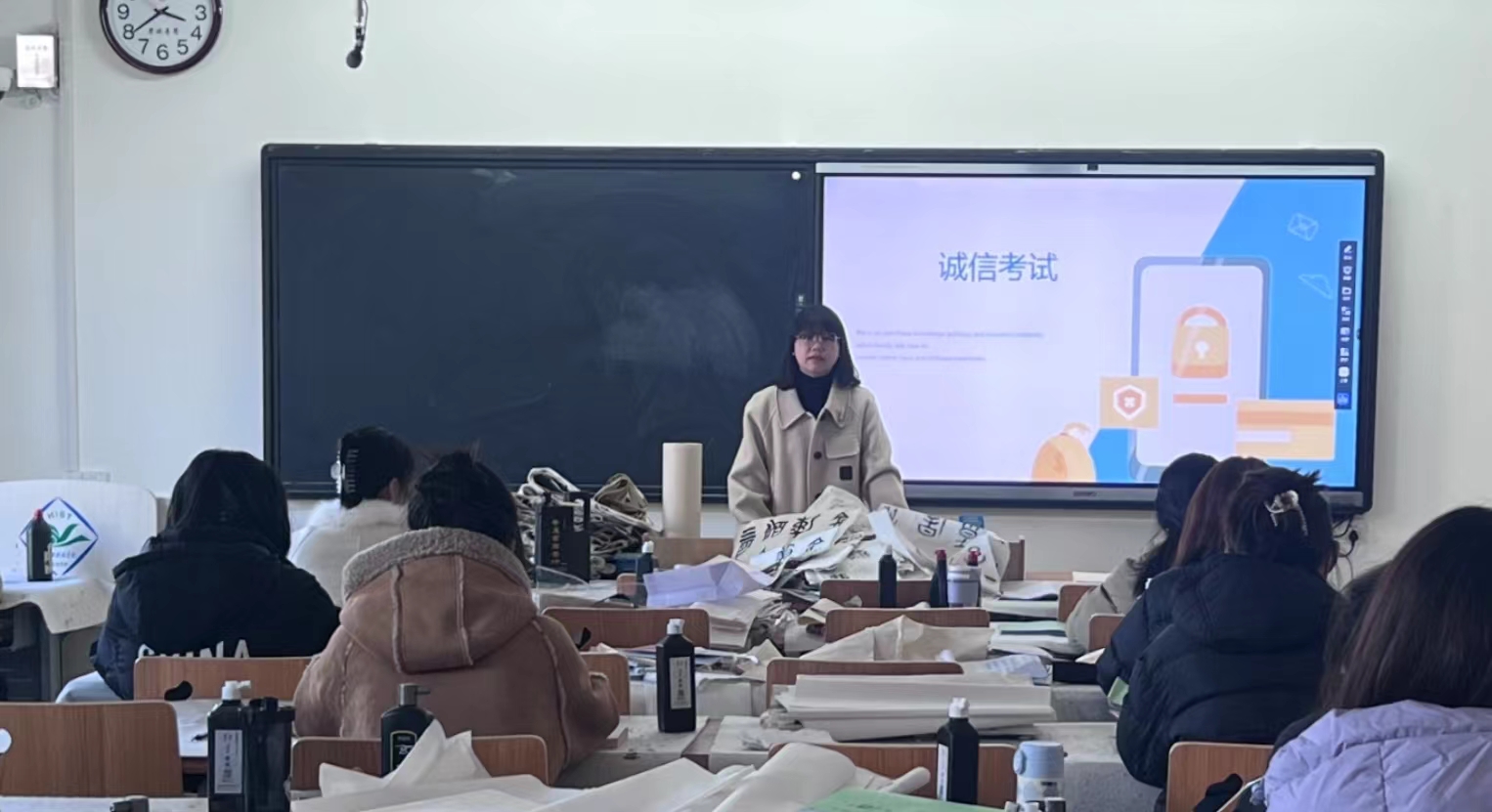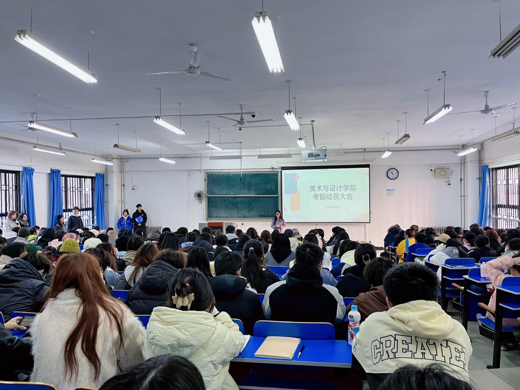 会议伊始,三名高年级学生分别针对美术学、设计学、动画学等专业特点展开考试经验分享,围绕应试的方法和技巧与同学们进行了现场交流,并对低年级学生的困惑进行一一解答。随后,院学生会学习创新部的负责人就《学生手册》中关于考试违纪处分的相关条款向大家做了详细说明;学生代表宣读《诚信考试承诺书》,号召同学们认真复习、诚信应考。最后,辅导员杨丹老师鼓励同学们认真复习,全力备战大学生涯的首次期末考试,并强调了诚信考试的重要性,要求同学们严格遵守考试纪律,杜绝作弊行为,自觉维护考试的公平性和严肃性。