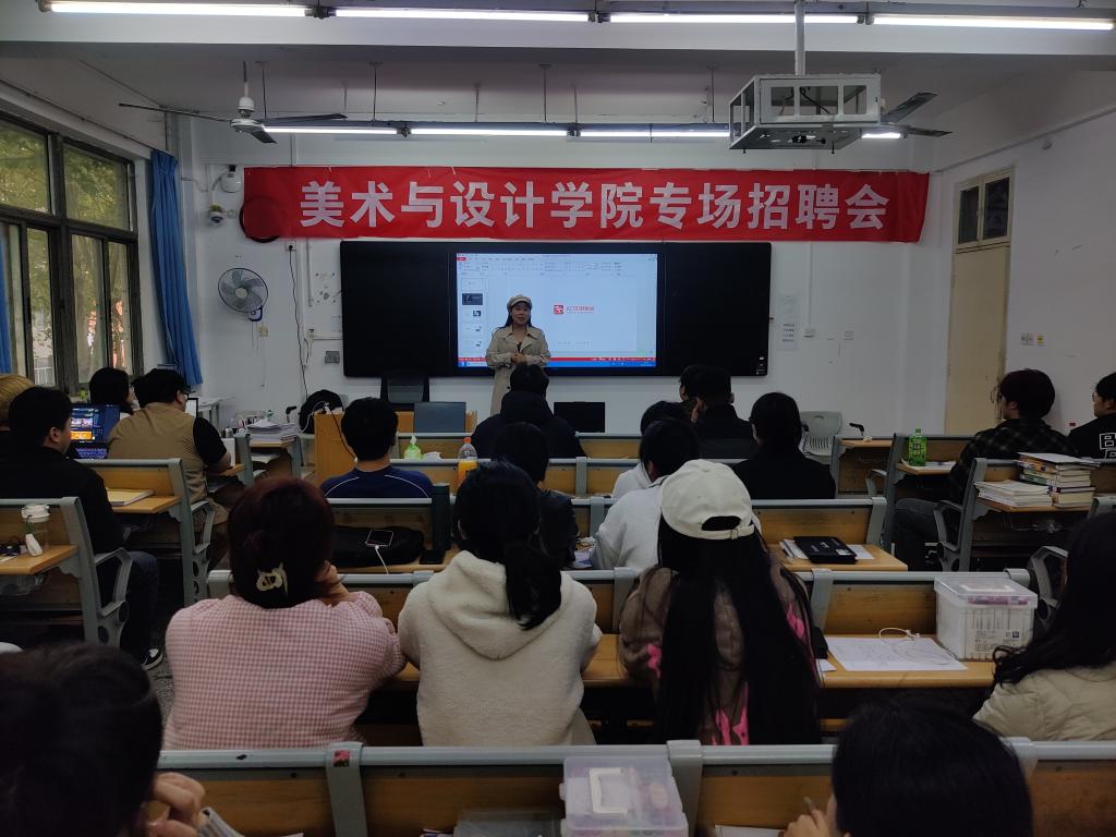 本次专场招聘会主要面向设计类、美术类、动画类专业毕业生,受邀的KD定制家居、鼎鼎装饰、顶艺空间设计、不一样影视文化传媒等企业提供了室内设计师、美术编辑、动画设计、制绘图员、助理剪辑师等多个就业岗位。按照招聘专业的相近性,各企业负责人通过播放宣传片、PPT展示、面对面交流的方式详细地向毕业生介绍了企业的文化、人才培养与发展方向、工作要求、岗位需求和薪资待遇等问题。到场的学生积极地与招聘人员进行交流,主动了解用人单位的基本情况并表达自己的求职意向。