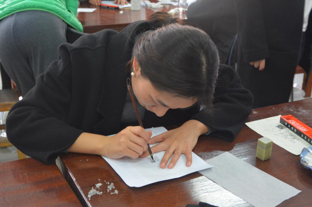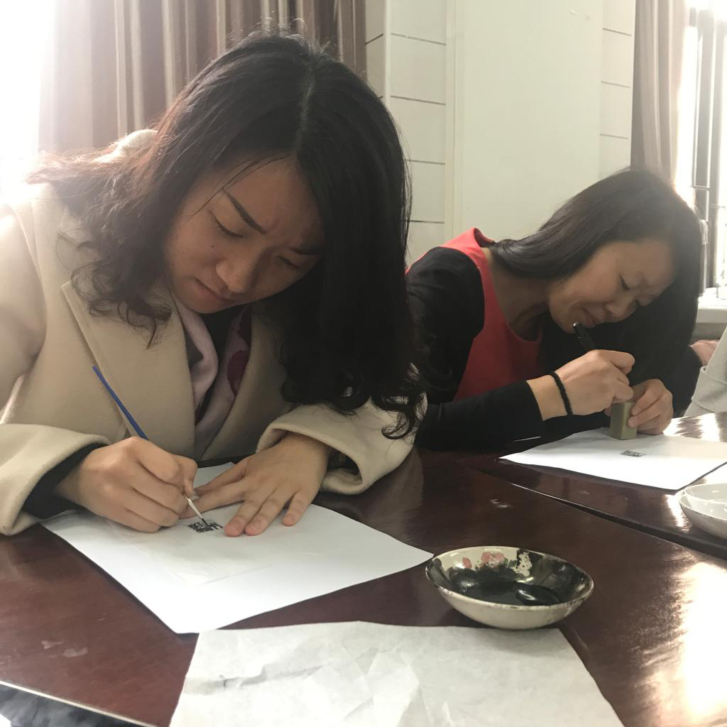 本学期的课以印章篆刻专题拉开序幕,聘请书法专业郑世华老师为大家倾情指导,讲授印章篆刻的相关知识。从篆刻字体选择、印稿设计到印稿上石、操刀治印,郑老师让大家在短时间对印章篆刻有了初步的认识。老师们认真听讲,亲自动手操作,专注地下笔,小心地走刀,遇到问题积极请教,整个课堂洋溢着浓厚的学习氛围。期间,艺术学院院长张新词亲临教室指导交流。最后大家以自己的名字为内容刻下第一枚印章,纷纷表示这次培训收获满满!